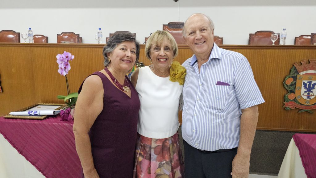 A Câmara Municipal de Olímpia entregou na noite desta sexta-feira (19) o Título de Cidadã Honorária à educadora e empresária Maria Justina Boitar Riscali, a Tina Riscali. A homenagem foi proposta pelo vereador Charles Amaral e aprovada por unanimidade. O plenário lotado acompanhou a sessão solene conduzida pelo cerimonialista Luiz Carlos Queiróz.