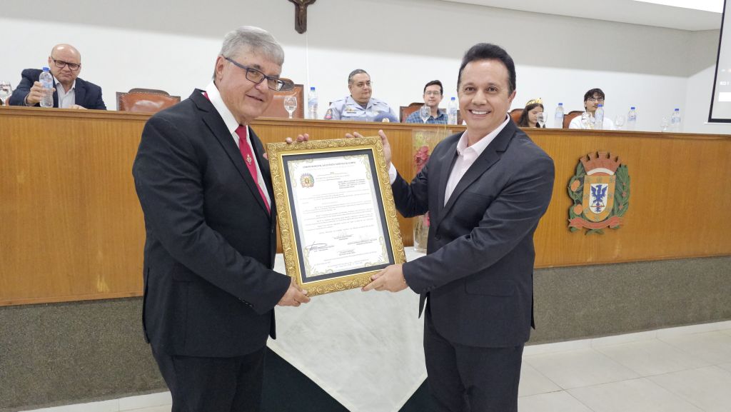 A Câmara Municipal de Olímpia realizou na noite desta terça-feira (18) o ato solene de entrega da Medalha Professor José Santana ao líder comunitário Flávio Crepaldi Vicente, por iniciativa do vereador Sandro Pires. A homenagem foi aprovada por unanimidade pelos 13 vereadores e reuniu representantes maçônicos, paramaçônicos, militares e civis ligados à trajetória de quase três décadas do homenageado na formação de crianças e jovens.